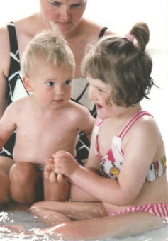| Rebecca is swimming with her Dad. |