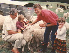 With her grandfather on a visit to a goat farm.