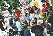 Rebecca's 6th birthday party. Making volcano's in the sandpit.